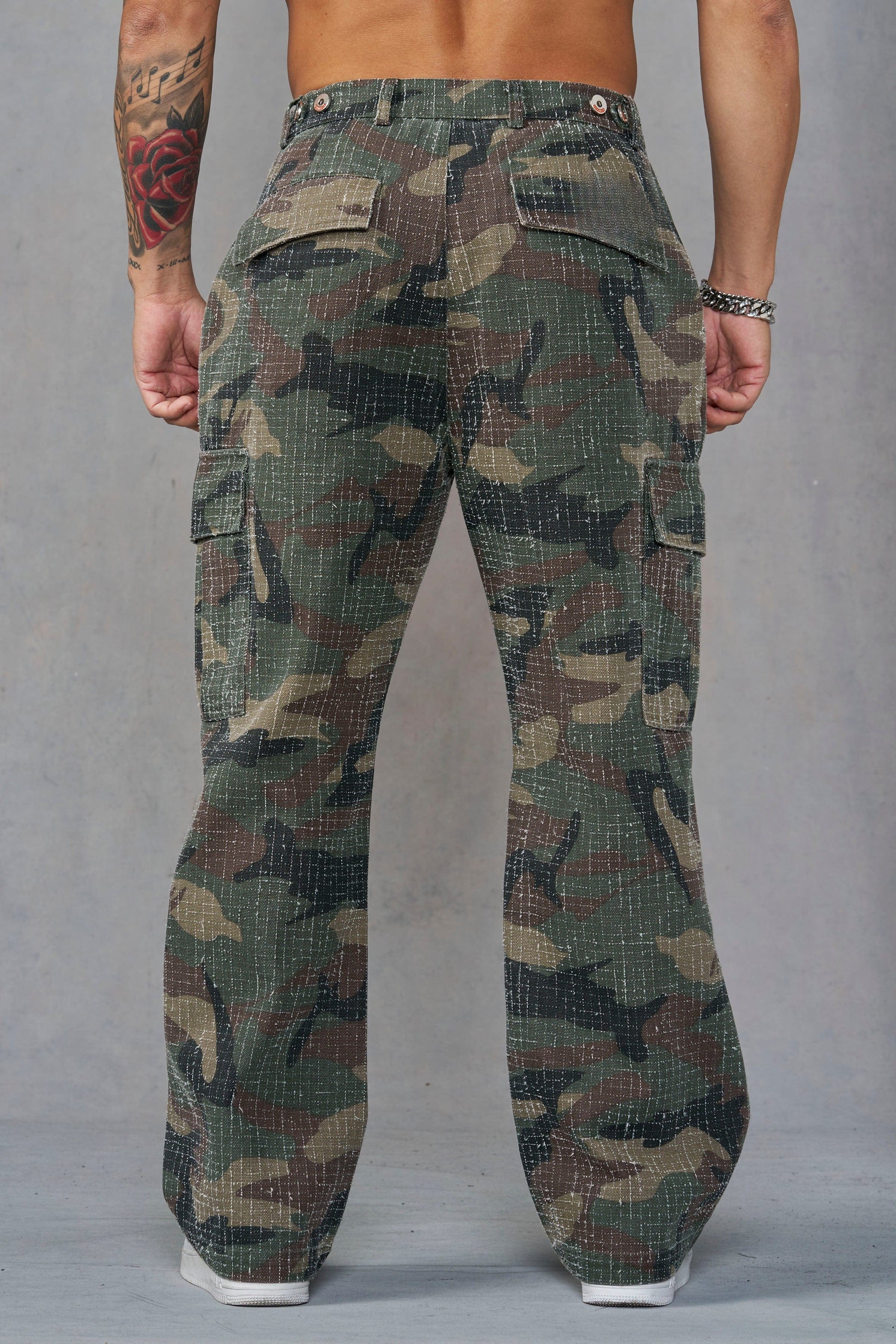 DESIGN: These cargo pants combine a rugged, military-inspired vibe with a sharp straight-leg fit. The fabric's subtle grid-stitch texture adds dimension and a slightly worn character, while the dual cargo pockets deliver function without unnecessary bulk. Classic belt loops and a button-zip closure complete the look with a tough yet understated finish.